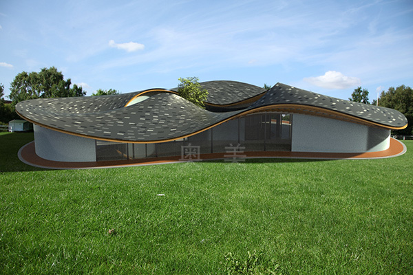 此為青島益銘私人別墅項目,此屋面系統采用的是新型建筑材料金屬復合瓦鋪...